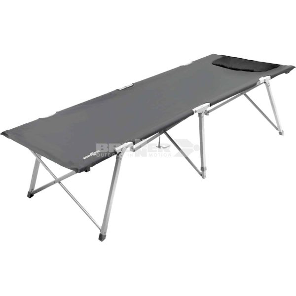 Lettino da campo robusto con struttura pieghevole appositamente progettata per essere aperta e ripiegata in un istante. Comoda tela in resistente tessuto di poliestere con poggiatesta integrato e imbottito. Di dimensioni compatte quando ripiegato. Con pratica borsa per il trasporto.