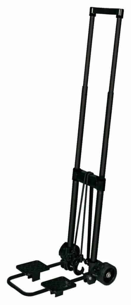 Carrello da trasporto con struttura telescopica pieghevole e raccordi in resistente materiale plastico. Ruote larghe.