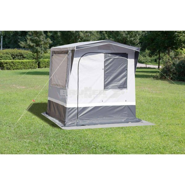 Tenda multifunzione di nuova concezione. Funge perfettamente da tenda cucina e da ripostiglio per la protezione di tutte le attrezzature che non possono essere lasciate all’aperto. L’intera tenda è realizzata in PVC ed è sostenuta da un robusto telaio in acciaio. Tre grandi finestre con zanzariera e un’efficiente ventilazione del tetto garantiscono un’ottima aerazione. Con ampia porta d’ingresso arrotolabile lateralmente. Con balza perimetrale. Incl. accessori e sacca custodia.