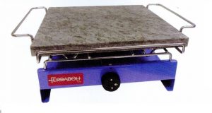 Fornello barbecue con pietra ollare, lamiera d’acciaio verniciato.