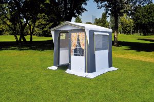 Tenda cucina con tre finestre in zanzariera ,coprifinestra incernierati, finestra anteriore in kristal con tendine.