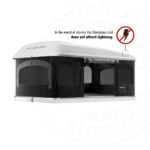 Una tenda hi-tech, che utilizza i migliori materiali come il tessuto AIRTEX® delle pareti laterali: impermeabile al tempo stesso – capace di espellere il vapore acqueo all’esterno della tenda e di garantirne la protezione dalle intemperie. Ogni porta o finestra è oscurabile parzialmente o totalmente per il massimo confort e per fermare la luce esterna.