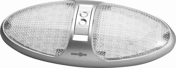Plafoniera a 2×39 Led con resistente involucro in ABS e lente in pp.Interruttore a 3 vie per un’accensione differenziata dei Led.Funzionamento 12V/6,4W.Colore grigio silver.