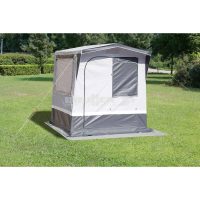 Il primo modella della tenda da cucina con classico tetto a falde, porta d’entrata arrotolabile lateralmente e 3 grandi finestre a zanzariera oscurabili. Tutte le cuciture del tetto sono nastrate. Con apertura di aereazione e balza perimetrale. Materiale di montaggio e sacca custodia inclusa. Disponibile in due misure.