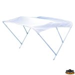 Para-sole, para-acqua. Telaio a 3 archi in alluminio verniciato bianco con tubo Ø 20 mm. Snodi in nylon bianco caricato fibra di vetro resistente agli agenti corrosivi marini e tessuto in poliestere resinato resistente ai raggi UV. Universale per ogni tipo di imbarcazione. Fornito in un kit di rapido assemblaggio.